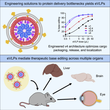 在一项新的研究中,来自美国布罗德研究所、加州大学欧文分校和宾夕法尼亚大学佩雷尔曼医学院等研究机构的研究人员开发出一种可以将基因编辑蛋白以足够高的效率递送到动物模型的细胞中并显示治疗效果的方法。相关研究结果于2022年1月11日在线发表在Cell期刊上,论文标题为“Engineered virus-like particles for efficient in vivo delivery of therapeutic proteins”。