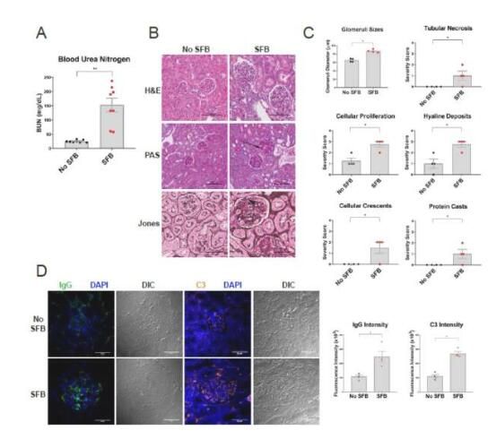 在肠道菌群中引入特殊的分节丝状菌或会对小鼠的狼疮性肾炎产生不利影响