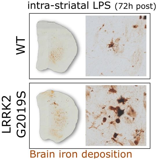 与帕金森病相关的LRRK2基因突变导致大脑中的铁错误定位
