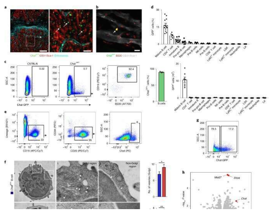 研究人员并未在骨髓中发现能释放乙酰胆碱的典型神经纤维的证据,相反,作为一种能制造抗体的白细胞,B细胞或许能在骨髓中供给乙酰胆碱,因此,B细胞能通过减缓骨髓中白细胞的产生来抵御炎症,即使在心脏和动脉中也是如此,令人惊讶的是,其能还能用一种神经递质做到这一点。